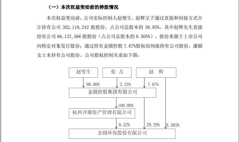 本次权益变动前,金圆股份的实控人为赵璧生、赵辉父子,二人通过直接和间接方式合计持有金圆股份38.85%的股权。
