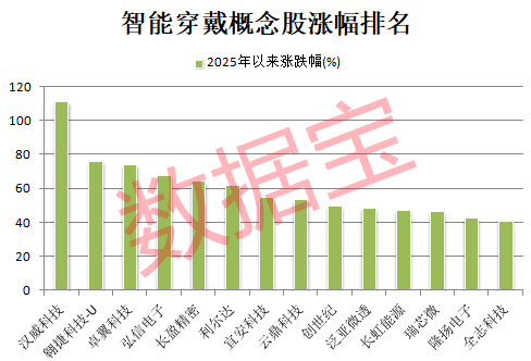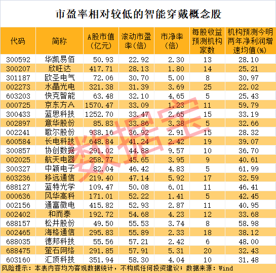 未来增长潜力方面,据数据宝统计,根据5家以上机构一致预测,2025年、2026年净利润增速均有望超20%的智能穿戴概念股有36只。3只千亿元市值的龙头公司入围,分别是京东方A、蓝思科技、科大讯飞。