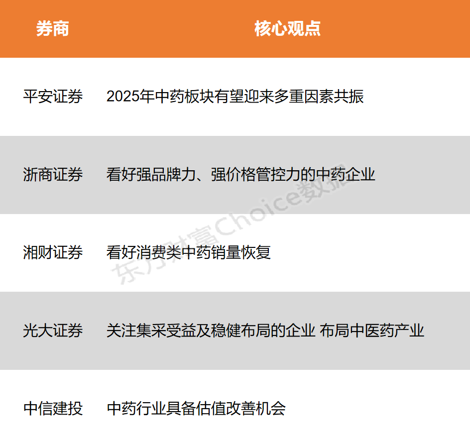 中医药行业秩序逐步恢复、基数影响减弱、叠加国企改革催化,具备估值改善机会。看好辨识度较高的品牌中药公司,建议关注优秀的中药OTC企业,也建议关注头部中药处方药企业。在行业基数得到消化、需求端确定性及政策预期稳定的情况下,预计2025年行业有望实现温和增长,整体走向高质量发展。